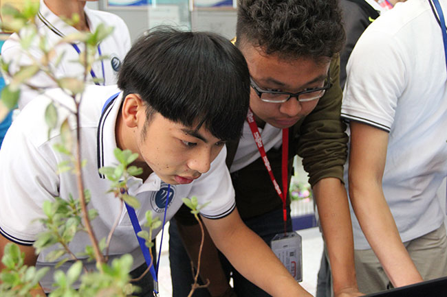 展会大厅里越来越多学子前来学习参观,设计师们看着自己的作品展现在大家面前,心中燃起丝丝成就之感。新入学的学子对师哥师姐们所开发的作品更是赞不绝口,内心坚定了学习目标。 #