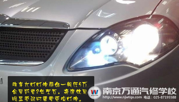 汽车大灯的灯泡一般来说每行驶5万公里或者2年左右,亮度效果就会减弱,这时需要更换灯泡。灯罩老化使灯光模糊,也会影响行车安全,因此灯罩一但出现老化也要立即更换。 #
