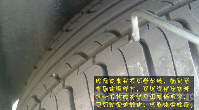 一般来说下过雨后车行驶时轮胎噪声变小,而洗车后胎噪会变大,这是因为内侧防护板上有泥吸噪。如果将前轮内侧防护板上粘上一层黑毡布或绒布就可以避免这一情况了。 #