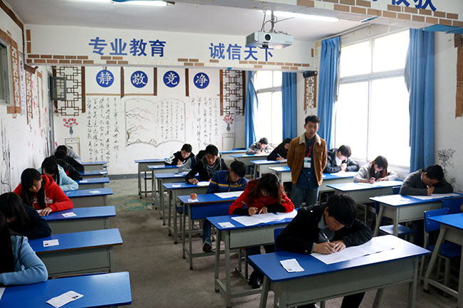 本次技能考试分笔试和上机操作两个部分,实行一人一桌,避免互相抄袭,确保考试成绩的真实性。考试现场秩序井然,气氛严肃,每一位考生自觉遵守考试纪律,聚精会神思考,认真作答,体现了云南新华学子们良好的精神风貌。