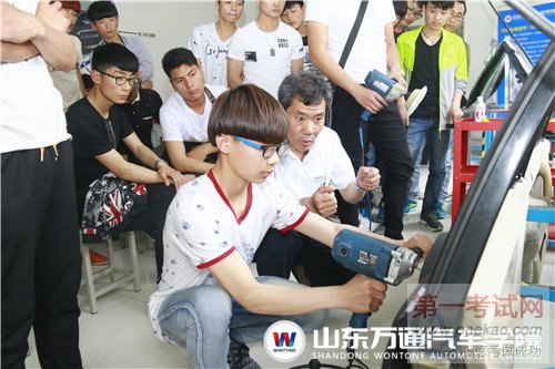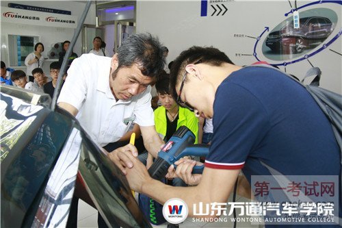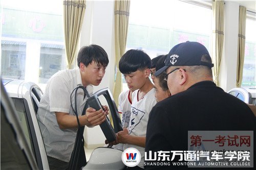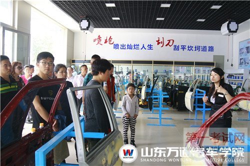 随后,学生家长在接待员的带领下参观体验了汽车轮胎专修、汽车贴膜体验、电器加装体验、汽车双人快保以及新技术演示等五个项目,体验现场不仅有山东万通汽车学院的优秀教师亲自解说演示,而且学生还在老师的指导下亲自上手,探索汽车维修保养的奥秘。
