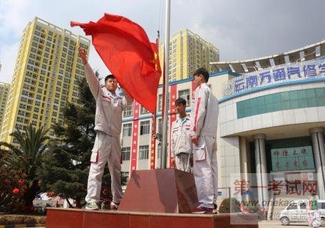 每周一的清晨,迎着太阳的金色光芒,云南万通汽修学校的老师和同学们都会聚集在操场上参加升旗仪式。在国旗护卫队的学生们护送下,当雄壮的国歌奏起第一个音符,随着师生们的注目,五星红旗像一团炽热的火焰迎着朝阳,沐浴晨曦冉冉升起。