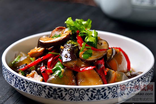 【食材】茄子1个、皮蛋2个、香菇6朵、红辣椒3根、生姜1块、大蒜2粒、白糖1茶匙、香菜1根、酱油1汤匙、盐适量、香醋1.5汤匙、香油1汤匙、花椒油1/2汤匙