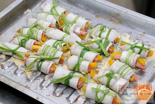 杏鲍菇香肠卷做法与步骤:
