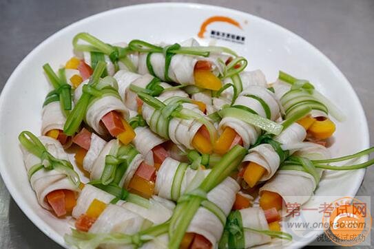 跟着大师学做菜,青岛新东方烹饪课堂向大家推荐口味咸鲜微辣杏鲍菇香肠卷的做法。