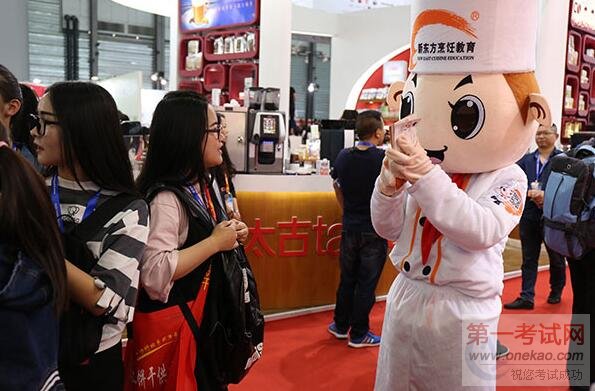 展台前始终挤满了围观的观众,纷纷拍照记录精彩瞬间,年轻人凝神观看大师表演,美女们专注聆听面塑大师讲解,品尝到西点同学们的作品时大家禁不住连连点头,甜蜜的气氛萦绕在展览会现场,还有小帅哥争相与新东方小厨神合影,小厨神自然也是萌众人一脸。