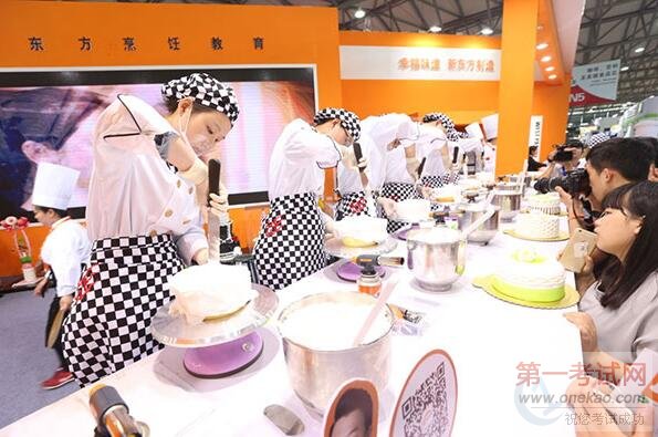 亮相上海新东方烹饪学校展台的模特是众多新东方学子中的佼佼者,擅长贵族式西点制作的她们拥有出众的外表,精湛的水准。从现场制作,到为参会人员提供美食试吃,无一不体现专业。烘焙时,她们专注,细心,精益求精。为参观者提供试吃时,细致、热情,让品尝者的拥有最贴心的美食体验!