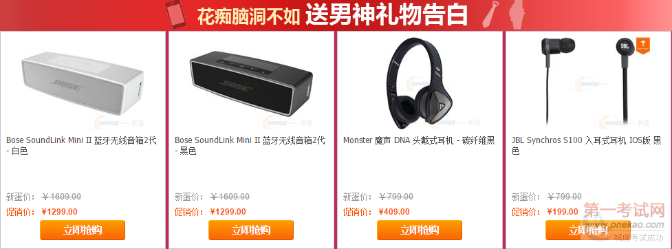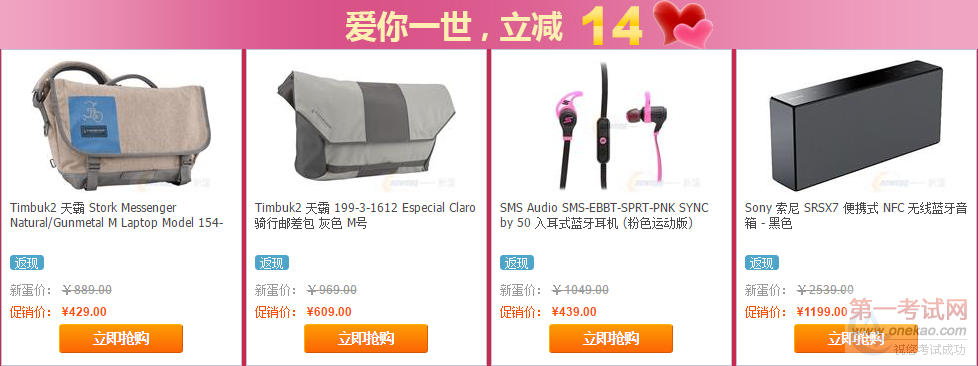 “爱 你一生一世”是经典表白语,新蛋也为你的勇气加油,8款礼品享受“1314”的返现优惠。如果你的表白对象是一个运动健身狂人,SMS Audio的这一款入耳式蓝牙耳机是小编推荐的。这个品牌是由美国说唱歌手50 Cent打造,时尚的外观,优质的音质,专业的运动版,让你戴着它自由的去跑步。如果你的表白对象时时尚潮人,喜欢骑行,背上天霸的邮差包,绝对让TA回 头率百分百! #