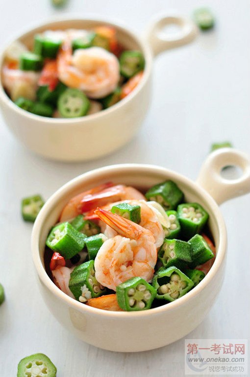 【食材】虾300克、秋葵250克、蒜3-4瓣、盐、胡椒粉适量、料酒一勺