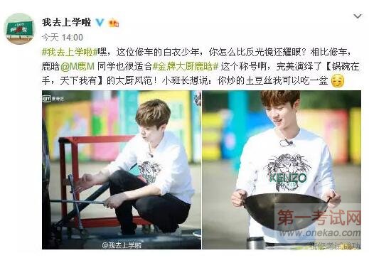 金牌大厨鹿晗,白衣少年很有雅厨味道…… #