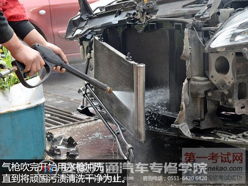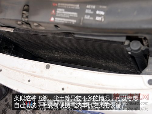 对于情况比较严重的车辆,我并不建议自己动手清洗,因为需要拆下前防撞梁。对于飞絮和尘土不多的车辆,并且车主自己动手能力比较强,可以考虑自己清理,但需要有类似便携式洗车机这样的设备。