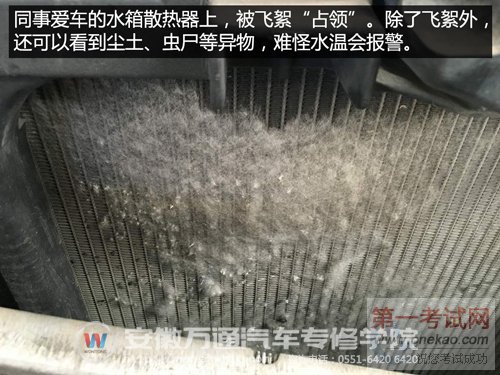 5月是出门郊游的好季节,可是合肥满大街的飞絮乱飘,简直让人睁不开眼睛,给我们的生活带来了不少麻烦。这不,前几天安徽万通汽车学院的一位英语老师在开车来学校上课的路上,汽车的水温突然报警。后来到了学生开的4S店检查才知道,是水箱散热器全部都被飞絮粘满,阻碍了水箱散热,这才引起了水温报警。 #
