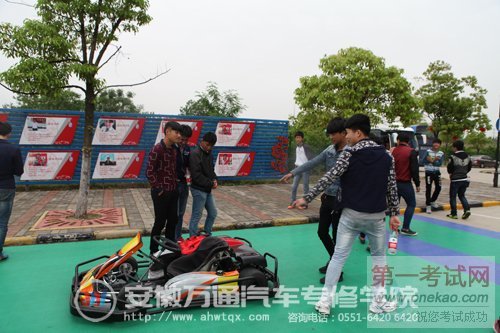 在实训区域,一辆辆造型独特的汽车吸引着同学们的眼球,面对我院同学自己改装的汽车,同学们惊奇地说到:“在外面从来都没有看过!”对汽车充满好奇的他们开始向随行的老师问东问西,并拍照留影,留下这个不一样的周六。