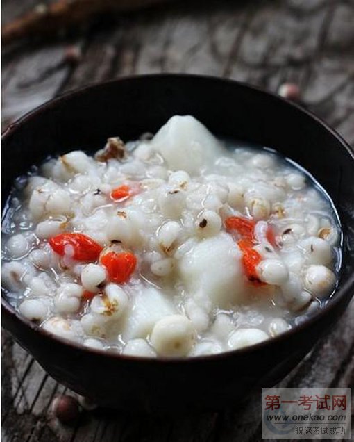 食材:鲜山药200克、薏米30克、莲肉(去心)15克、大枣10枚、鲜百合30克、小米50~100克(3-4人量) #