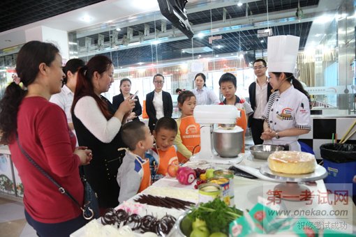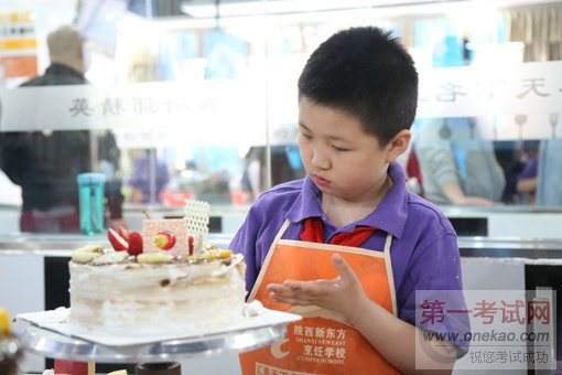 6月1日早晨9点,位于北稍门振华北路4号的陕西新东方烹饪学校内热闹非凡,若干小朋友们围聚在一起,穿上独一无二的新东方小围裙,即将DIY做蛋糕。教学楼四层西点裱花教室内,新鲜绵软的蛋糕胚、种类缤纷的各类水果、巧克力插件、果仁碎、罐头、装饰法香等早已摆放到位。小朋友们欣喜万分,好奇地雀跃欢呼,家长和孩子们的笑声汇聚成了欢乐的海洋。