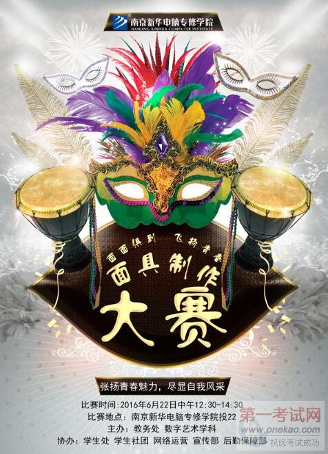 6月22日,南京新华电脑专修学院将举行面具制作大赛。绚丽的色彩,巧妙的搭配,神秘的假面......这才是夏天的正确打开方式! #