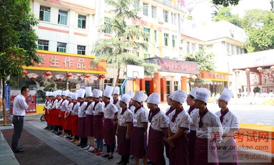 上午九点,进入热菜比赛的五十名参赛选手排着整齐的队伍,聚集在实训大厅门前。当评委老师宣布完比赛规则和注意事项后,所有参赛选手拿着比赛所需的各种食材和原料,整齐有序的进入实训大厅,开始比赛菜肴的烹制。 #