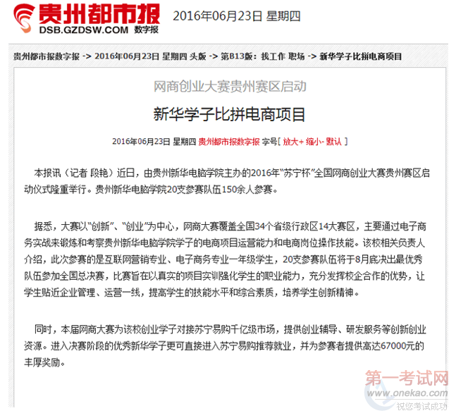 《贵州都市报》报道:网商创业大赛贵州赛区启动,贵州新华学子比