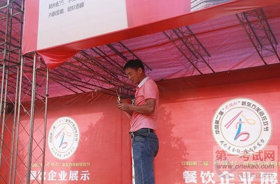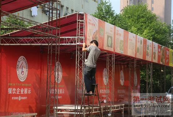 穿过宴席展台的主区域,步入餐饮企业展示区。这里也是热闹得很,相关工作人员在做最后的展架安全检查工作,查漏补缺,不放过每一个细节。这几天高强度的工作,并没有影响他们的心情,你看!灿烂的笑容依旧挂在脸上。