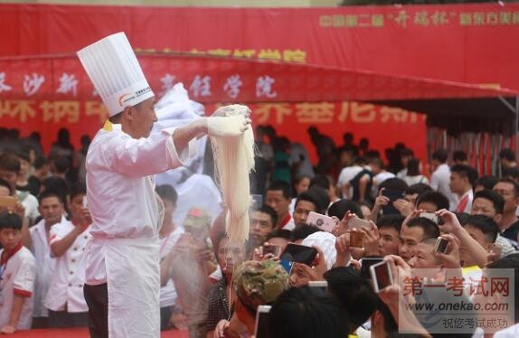 在第二届“开瑞杯”新东方美食狂欢节上,多位中国烹饪大师现场展示的烹饪“绝活”成为另一大亮点。独轮车头顶刀削面、关公扯面、蒙眼切菊花豆腐、板针气球切腰花等绝活轮番上演,高超的技能博得了现场观众的眼球与赞誉。向寒大师“蒙眼切菊花豆腐”,运用精湛的刀工将豆腐切成菊花盛开状,“豆腐丝”粗细均匀,置于汤汁中,温情绽放;张成国、马晓亮大师带来的“独轮车头顶刀削面”,一边脚蹬独轮车,一边双手同时削面,引得现场观众拍手叫绝;李海滨大师“长寿一根面”,寓意新东方烹饪教育长长久久。