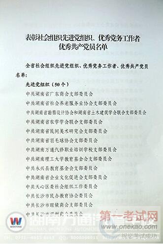 大会在《中华人民共和国国歌》中拉开帷幕。省社会组织管理局局长陈自力宣读了《中共湖南省社会组织工作委员会关于表彰全省社会组织先进党组织决定》,湖南万通汽修职业培训学校等50个党组织获得全省社会组织“先进党组织”荣誉称号。段林毅等领导分别为受表彰的党组织颁奖,湖南万通汽修学校支部副书记兼组织委员陈亮代表学校参加此次领奖。党工委书记段林毅对获奖党组织表示热烈的祝贺!向奋斗在全省经济社会各个领域的广大社会组织党员和党务工作者致以节日的问候!#p#分页标题#e#