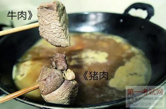 四尝:做熟了以后,牛肉老,猪肉嫩,这是最明显的区别。 #