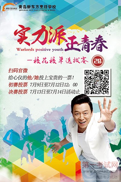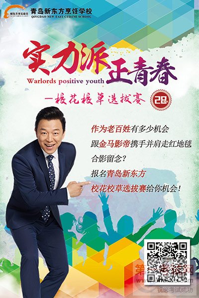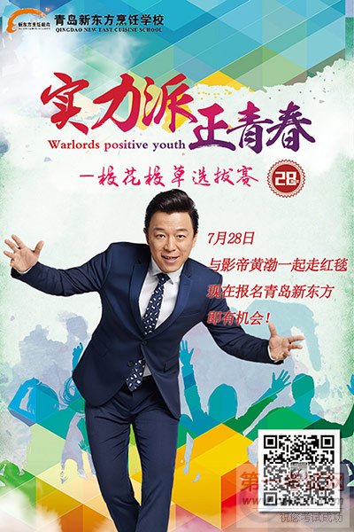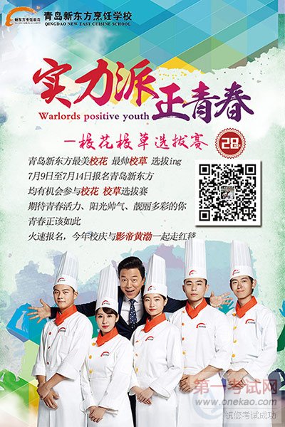 “实力派 正青春”青岛新东方烹饪学校最美校花、最帅校草官微初赛评选投票开始啦!7月9日至7月14日来校报名参与选拔均有机会与影帝黄渤一起走红毯,将于7月28日飞抵成都,影帝邀请费用全免哦! #