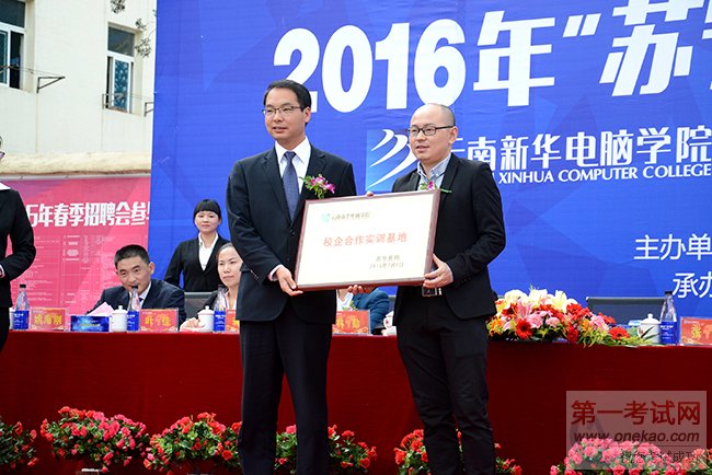 随后,活动现场,云南新华电脑学院胡传军校长与苏宁易购、昆明市电子商务协会等各企业代表共同为校企合作揭牌,全校师生共聚一堂,见证了这一激动人心的时刻!揭牌仪式结束,胡校长发表了重要讲话,他希望通过此次活动,切实增强同学们的实战经验,为以后的学习工作夯实基础,对同学们报以了极大的希望,同时也对此次合作的达成表达了充分的信心和期望,期待在未来双方能互赢互惠、精诚合作,共同推动中国的互联网人才建设。