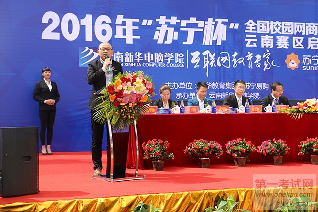 “此次网商创业大赛是推动院校创新创业教育工作的一项重要活动,云南新华电脑学院多年来始终坚持以市场为导向为在校学生提供学以致用和创新能力的平台,此次‘苏宁杯互联网+双创大赛’的开展,将进一步提高学生的实践能力、就业能力、创新能力和创业能力,促进我院提高各学科教学质量,为广大在校生提供了工学结合的机会。为此,我预祝云南新华电脑学院首届‘苏宁杯互联网+双创大赛’启动仪式取得圆满成功”。叶主任精彩的致辞赢得了学生们的阵阵掌声。