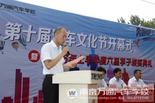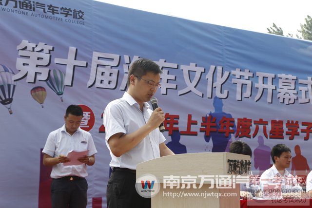 首先,由南京万通汽车学校杨助理致开幕词。他表示,汽车文化节旨在通过一系列的活动丰富同学们的课余生活,加深同学们对汽车知识的了解,增强团队合作精神,提高学生综合素质。