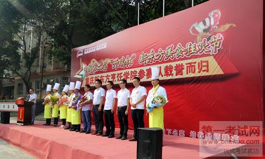 重庆新东方烹饪学院参赛代表队在第二届“开瑞杯”新东方美食狂欢节上荣获大赛团体宴席赛“金鼎奖”,热赛比赛项目“特色金牌菜奖”、“金勺奖”和“最佳风味小吃奖”等多项大奖的喜讯早已让每一位重庆新东方学子热血沸腾,今天,为了欢迎参赛选手凯旋而归,学院特意为他们举行了一场隆重的欢迎仪式。 #