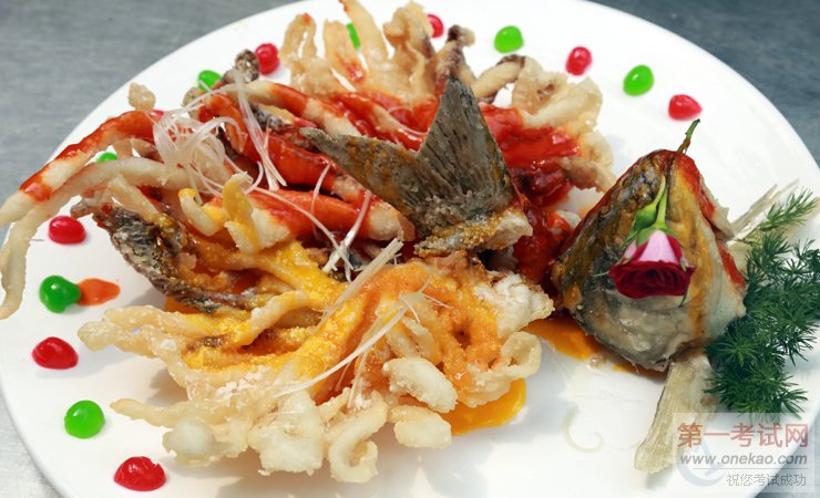 演示菜肴:双色金丝鱼 #