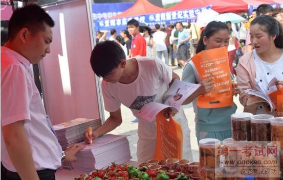 在咨询会现场,场面火爆,炎热的天气依旧无法阻挡学生及家长前去了解咨询的热情。
