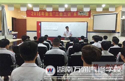 文章导读:湖南万通汽修学校7月12日晚举办2016年新生“三教三训”专题讲座,由学校韩助给同学们进行全面的讲解。 #