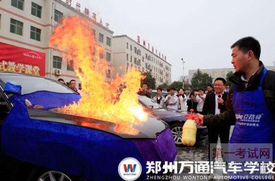 在体验式教学现场,万通老师们为了让学生亲身体验车辆损伤及维修,学生自己敲击实训车辆挡风玻璃,观察玻璃损毁状况,并现场进行车辆定损、损伤维修。更有轮胎爆破、车辆起火,在这一系列过程中,学生们不仅玩的爽,也萌生了学习兴趣,更真切的掌握了技术。