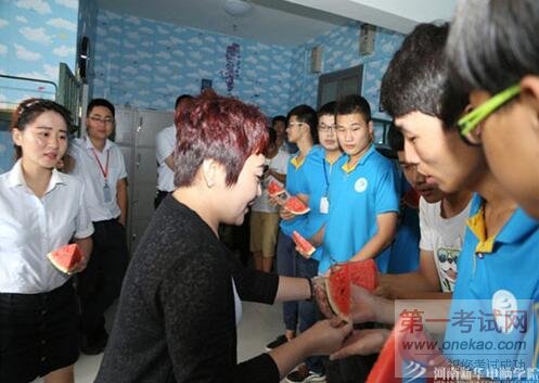 伏夏送清凉 河南新华电脑学院领导送西瓜慰问新生