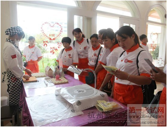 7月13日,九阳集团组织数百名员工来杭州新东方烹饪学校进行西点制作的团体培训。