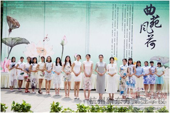 虽对西子畔的景与情早有耳闻,但目睹比赛现场此情此景,有所触动更是再所难免。现场,参赛者身着旗袍,或淡粉、或湖蓝、或月白,分明是戴望舒笔下如丁香般的女子。那份简静与清美,是锦上添花的绝色嫣然,空灵得似水中的荷,平仄多姿,楚楚动人。嗅着清风中奶油的香气,让人仿佛置身曲院风荷之中。