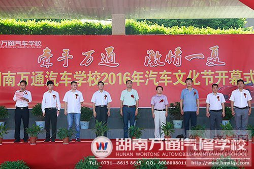 汽车文化节,是湖南万通汽修学校独具特色,集专业教育、学生技能比拼、文体活动为一体的大型校园活动,自举办以来,受到每一届学生的欢迎。7月23日上午9点,湖南万通2016年汽车文化节开幕式在学校操场举行,湖南省民办教育协会副会长罗安民、长沙理工大学教育学院院长颜鲜明、湖南广播电视大学直属学院院长许旭、湖南省民办教育协会副秘书长章洪波、湖南省汽车商会副秘书长肖海、长沙宾利汽车有限公司服务经理陈杰、学校校长潘太煌以及校长助理韩明与全校师生一起出席了本次文化节开幕式,共同领略了一场汽车文化的饕餮盛宴。 #