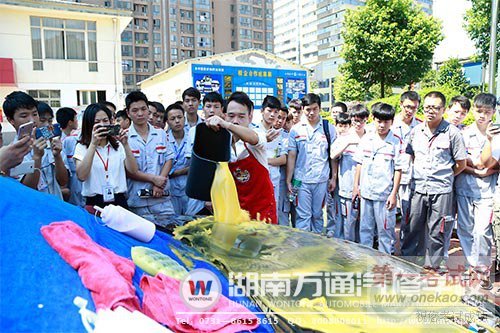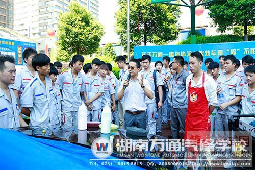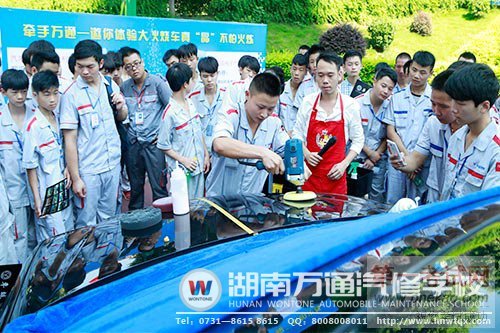 文章导读:为了让万通学子更直观地感受到汽车美容的先进理念和效果,湖南万通汽修学校在7月23日汽车文化节上组织了一场别开生面的教学体验课。