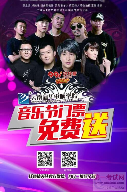凡在2016年7月26日—8月4日报读云南新华电脑学院的学生即可免费领取音乐节门票+享受学费减半机会。 #