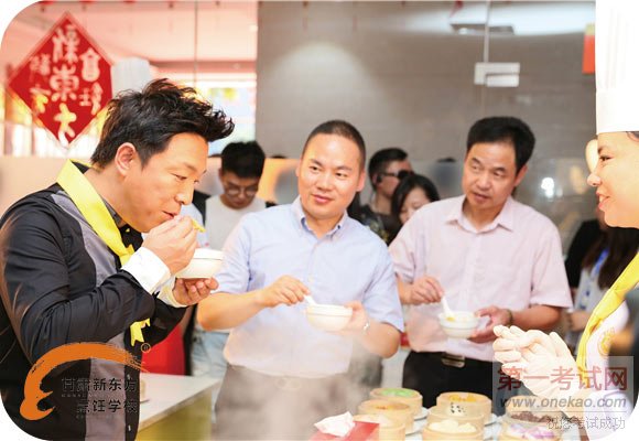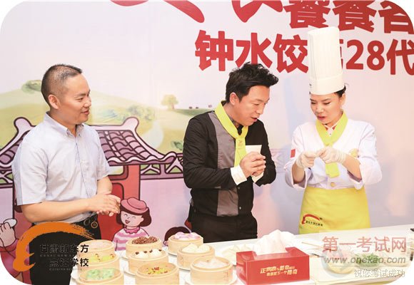 在中式面点课堂,四川名小吃钟水饺第28代传承人,新东方烹饪教育陈海燕大师正在制作钟水饺。晶莹剔透,小巧玲珑的钟水饺像接受过训练似的,一个接着一个跳到电煮锅里,如小鱼般随着水流一起舞蹈。待饺子煮熟后,黄渤老师蘸着微辣、鲜香、咸中带甜的红油味碟,一口咬下去,回味无穷。只是品尝当然不够,课堂上,黄渤虚心向陈大师请教包钟水饺的方法,并跟随陈大师一起包起了钟水饺。只见黄渤先取一块饺子皮,放入馅料,然后在饺子皮的边缘抹上清水,把饺子皮对折后,先把中间捏紧,再把两边捏紧,一个像模像样的“黄渤牌”钟水饺呈现在大家面前。#p#分页标题#e#