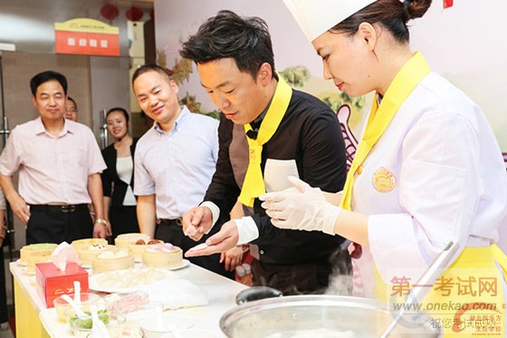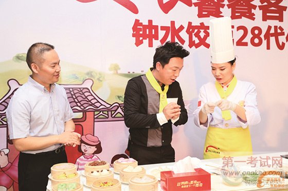 在中式面点课堂,四川名小吃钟水饺第28代传承人,新东方烹饪教育陈海燕大师正在制作钟水饺。晶莹剔透,小巧玲珑的钟水饺像接受过训练似的,一个接着一个跳到电煮锅里,如小鱼般随着水流一起舞蹈。待饺子煮熟后,黄渤老师蘸着微辣、鲜香、咸中带甜的红油味碟,一口咬下去,回味无穷。只是品尝当然不够,课堂上,黄渤虚心向陈大师请教包钟水饺的方法,并跟随陈大师一起包起了钟水饺。只见黄渤先取一块饺子皮,放入馅料,然后在饺子皮的边缘抹上清水,把饺子皮对折后,先把中间捏紧,再把两边捏紧,一个像模像样的“黄渤牌”钟水饺呈现在大家面前。 #