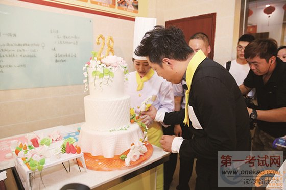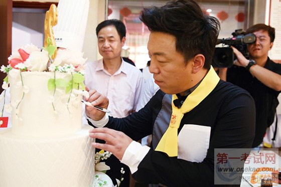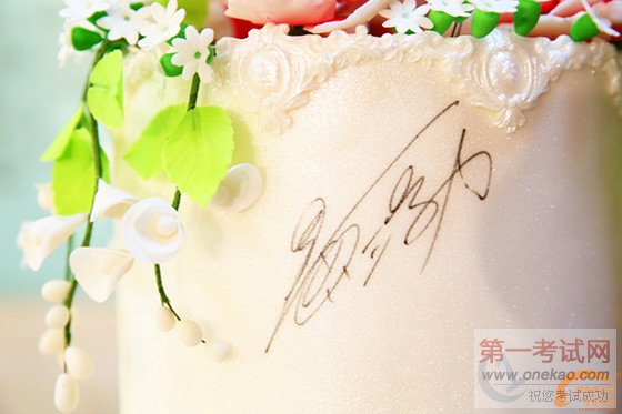 一走进西点课堂,西点甜品浓郁的奶油芳香扑面袭来,琳琅满目各具特色的西式甜品让人仿佛置身在了甜品屋。正在制作翻糖蛋糕的新东方烹饪教育留法大师王寅如吸引了黄渤的目光。只见王老师先用糖扑将糖粉面均匀的扑在案板上,用牙签将粉色素粘在糖膏上,将其揉搓均匀后擀成一大圆片,然后借用五瓣花模具,一朵娇艳欲滴盛开的玫瑰花呈现在眼前。神奇的美食体验邂逅男神的好奇心,看到翻糖蛋糕的制作过程,生活中较少接触到西点制作的黄渤直呼:“今天来的太值了!”随后,黄渤在这款唯美精致的蛋糕上签下名字,作为纪念。