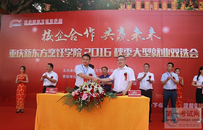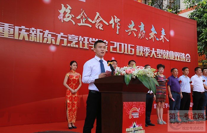 2016年8月4日,重庆新东方烹饪学院特举办了“重庆新东方2016秋季大型就业双选会”,沙坪坝区人力资源和社会保障局局长王小梅、调研员谭千林、重庆新东方烹饪学院院长赖海勇、金牌校区主任刘玉虎、创就业指导中心主任林敬华、特钢校区主管朱光红、上海望湘园餐饮有限公司人力资源总监吴超波、五十七度湘(中国)餐饮管理有限公司人力资源总监钟怡等30多家来自全国各地的知名企业代表,出席此次就业双选会,此次活动的举办旨在提高我院毕业生就业质量,实现优质就业,解决困扰学生的就业难题,实现我院与企业的良性互动,形成实习、就业的紧密链接。