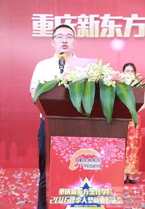 上午9点18分,活动准时开始。重庆新东方烹饪学院院长赖海勇,他代表学院对此次秋季就业双选会的举办表示热烈的祝贺,向莅临现场的各位领导嘉宾、企业表示了热烈的欢迎和衷心的感谢,他表示本次活动的举办旨在搭建学生就业平台,实现校企供需双赢,希望应聘的同学们珍惜机会,把握机遇,找准目标,积极就业,充分展示重庆新东方学子的风采,希望各用人单位能慧眼识能君,招聘到所需英才,为企业的快速发展奠定坚实基础。 #