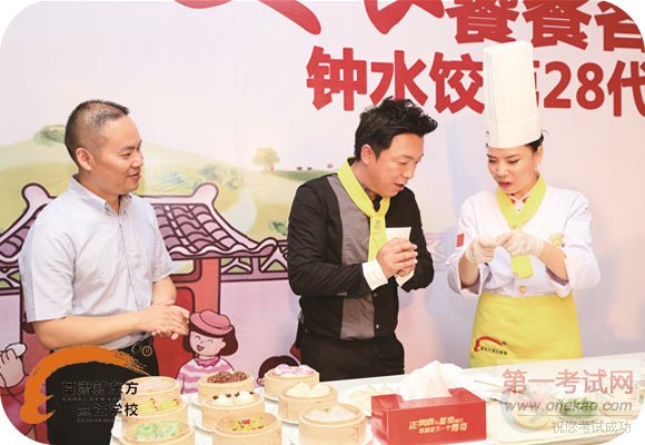 名小吃“钟水饺”第28代传承人,新东方烹饪教育陈海燕大师在中式面点课堂亲手制作钟水饺。待饺子煮熟后,渤哥便迫不及待的蘸着微辣、鲜香、咸中带甜的红油味碟,一口咬下去,回味无穷。只是品尝当然不够,课堂上,黄渤虚心向陈大师请教包钟水饺的方法,并跟随陈大师一起包起了钟水饺。只见黄渤先取一块饺子皮,放入馅料,然后在饺子皮的边缘抹上清水,把饺子皮对折后,先把中间捏紧,再把两边捏紧,一个像模像样的“黄渤牌”钟水饺呈现在大家面前。