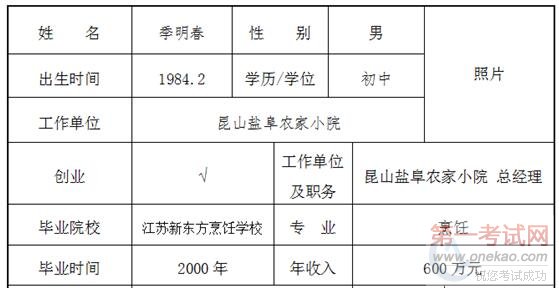人物简介:季明春,江苏滨海人,2000年毕业于江苏新东方烹饪学校中式烹调专业,后经学校推荐到无锡希尔顿酒店工作,在此积累了丰富的酒店管理经验,2003年开始创业,由小排档开始,经过几年的累积了一定的资金,2008年投资200万开了第一家有规模的家乡风味餐饮企业盐阜农家小院,由于经营优良,到目前已发展到6家门店,规模仍在不断扩展中,个人资产达1000余万。 #