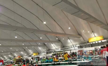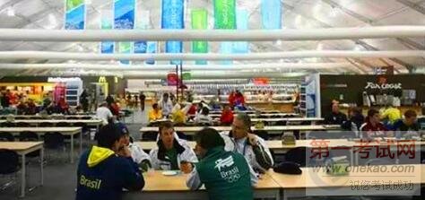 在这个外形酷似蔬菜大棚的食堂中,为运动员们提供了5种不同的buffet, 巴西特色菜肴,亚洲菜系,意面,pizza等等,对穆斯林和犹太运动员的食物将坚持其特定的宗教饮食规律。