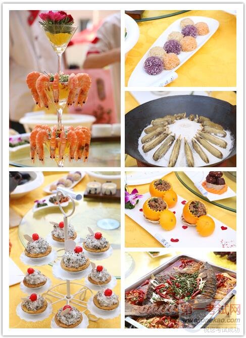 据悉,此次筵席展台以班级为单位,集中体现了各专业的特色。烹饪方向专业的筵席展出的内容主要集中在精品热菜、冷拼、果盘以及大中型雕刻类作品。西点方向专业则是各类时尚精美的裱花蛋糕和点心唱主角。展台上,一道道摆放错落有致、装饰精致灵巧的美食都倾注着学子们的心血。从主题构思到食材、装饰品的购买、食物的制作、展台的布置都由全班同学共同合作完成。#p#分页标题#e# #